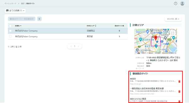 「登録競合サイト」の下に自動で登録された競合店舗が5つ表示されます。
